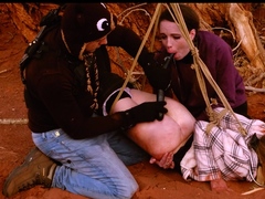Degrading ass to mouth for two girls tied to tree outdoors